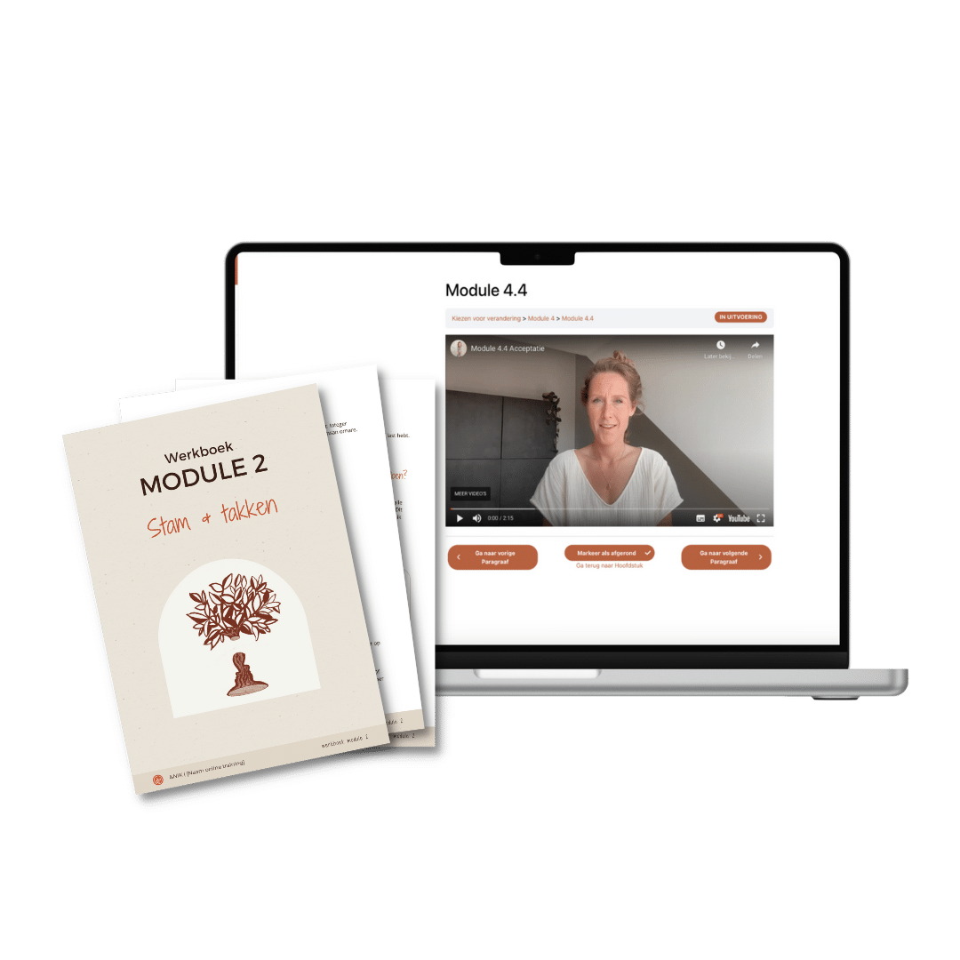 Je houdt één jaar toegang tot de training. Daarin krijg je toegang tot je persoonlijke werkboeken (die je kunt downloaden, printen en voor altijd kunt bewaren) en kun je gedurende 1 jaar de online modules in de Academy bekijken. De reden daarvoor: ik wil je niet alleen de handvatten en kennis geven, maar ook een liefdevolle schop onder je kont om het daadwerkelijk in de praktijk te brengen.